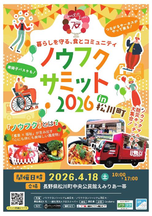 町政施行70周年記念事業第1弾として、ノウフク連携に取組む団体と一緒にノウフクサミット2026in松川町を開催します。