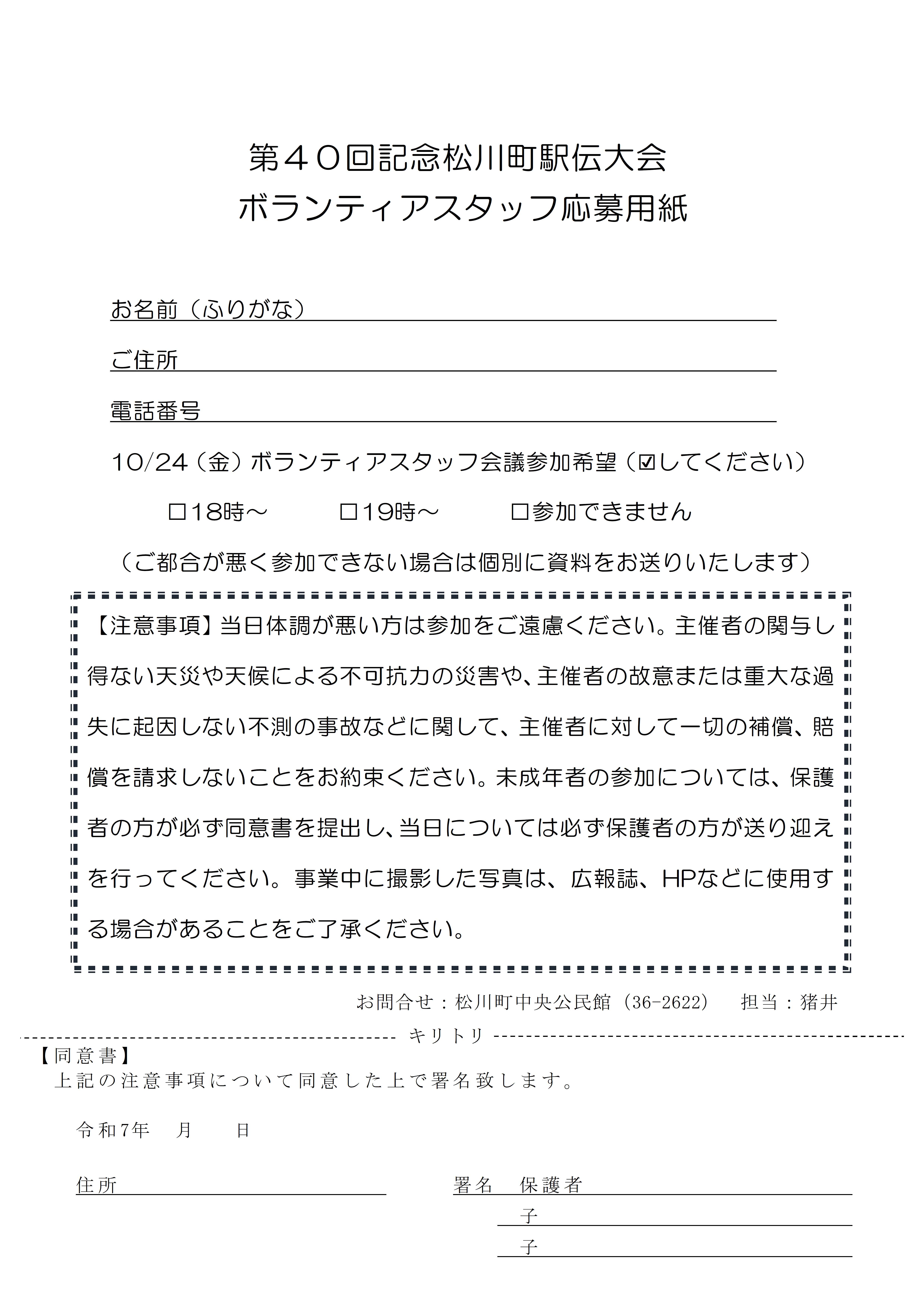 第40回記念 松川町駅伝大会 ボランティアスタッフ応募用紙兼同意書 (JPEG: 1.4MB)