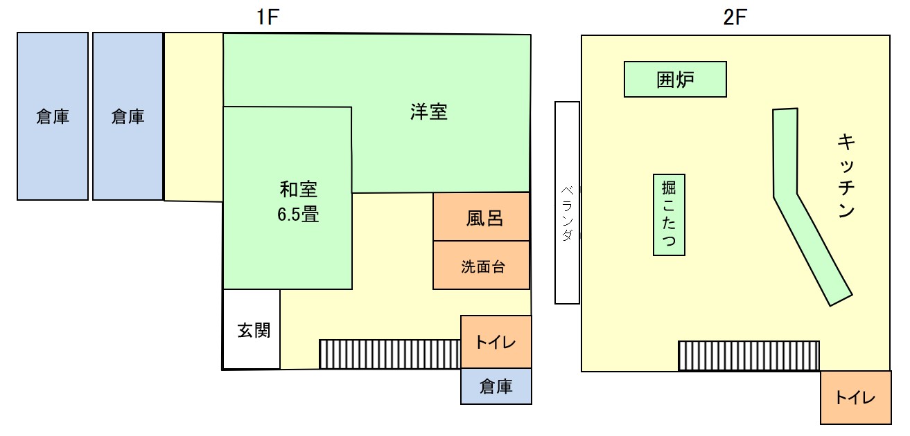 外付けの倉庫や家庭菜園用の畑、2階にある掘りごたつや囲炉裏、キッチンカウンターなど、趣味によって様々な使い方が考えられそうです。