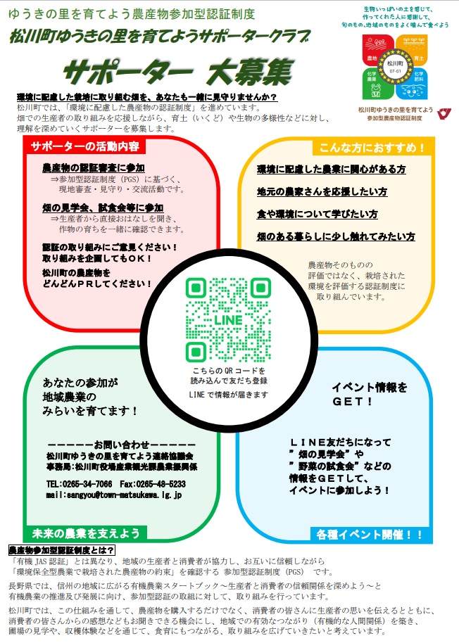 松川町「ゆうきの里を育てよう」サポータークラブ を募集しています!
